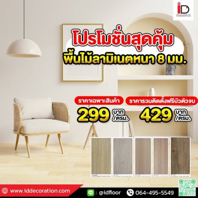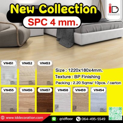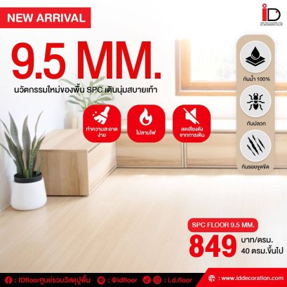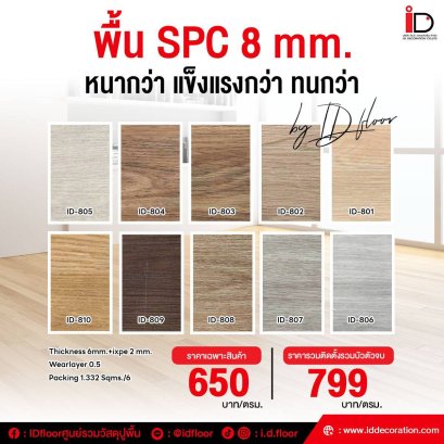 I.D.Decoration แผ่นพื้น SPC SUPERIOR แบบ CLICK LOCK ความหนา 9.5 mm. SURFACE : BP SURFACE SIZE : 1300 x 230 x 8 / + ixpe 1.5 mm. COVER : 1.495 sqms. / 5 pcs. / Box