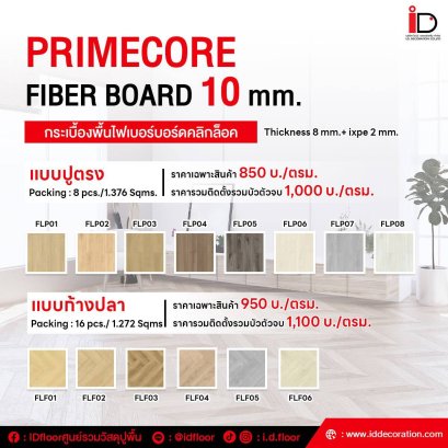 พื้น FIBER BOARD ลายไม้ แบบ CLICK LOCK รุ่น FBP-PRIMECORE ความหนา 10 mm. (แบบปูตรง) (ร่อง V GROOVE) SIZE : 141 x 1220 x 10 mm. THICKNESS : 8 mm. + ixpe 2 mm. PACKING : 1.376 sqms. / 8 pcs. / BOX