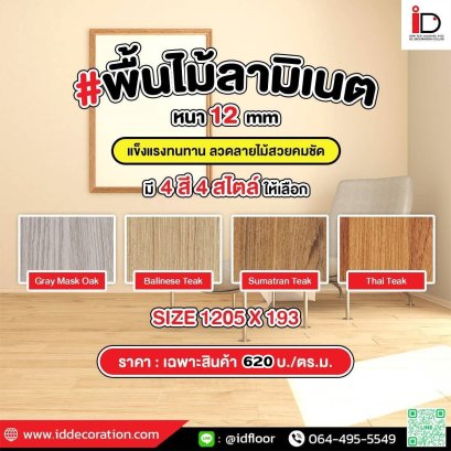 พื้นไม้ลามิเนต ความหนา 12 mm. รุ่น SMART-TZ SIZE : 1205 x 193 x 12 mm. COVER : 1.62 sqms. / 7 pcs. / Box