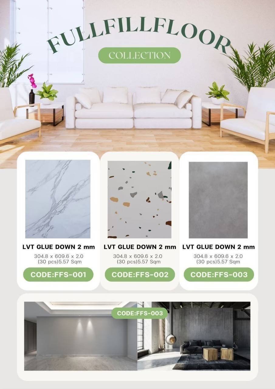 กระเบื้องยางลายหินแบบทากาว ความหนา 2 mm. รุ่น FULLFILLFLOOR COLLECTION-FFS SIZE : 304.8 x 609.6 x 2.0 mm. PACKING : 5.57 Sqms. / 30 pcs.