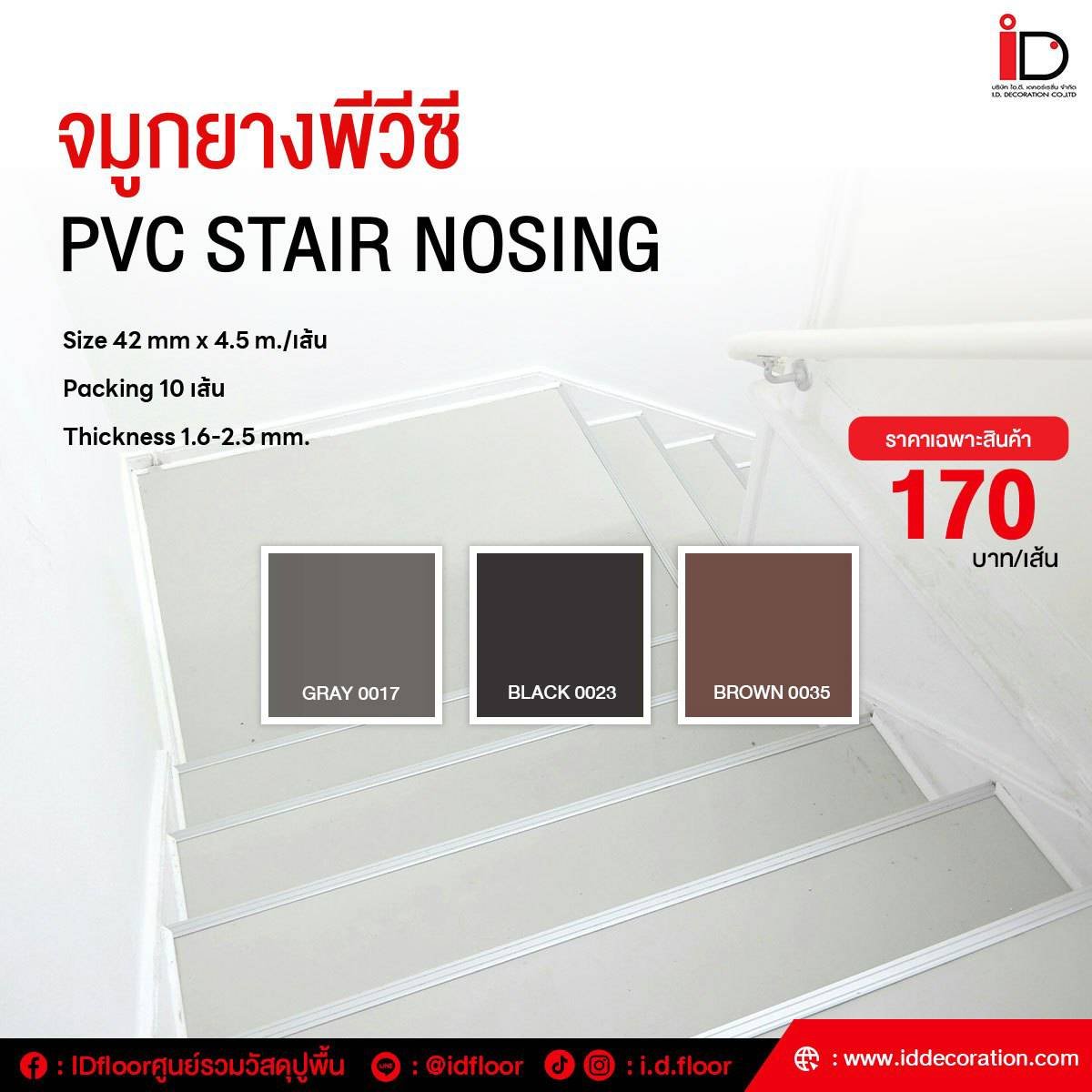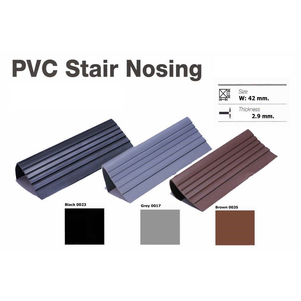 จมูกยางพีวีซี (PVC STAIR NOSING) | SIZE : 42 mm. x 4.5 m. / เส้น | PACKING : 10 เส้น | THICKNESS : 1.6 - 2.5 mm.